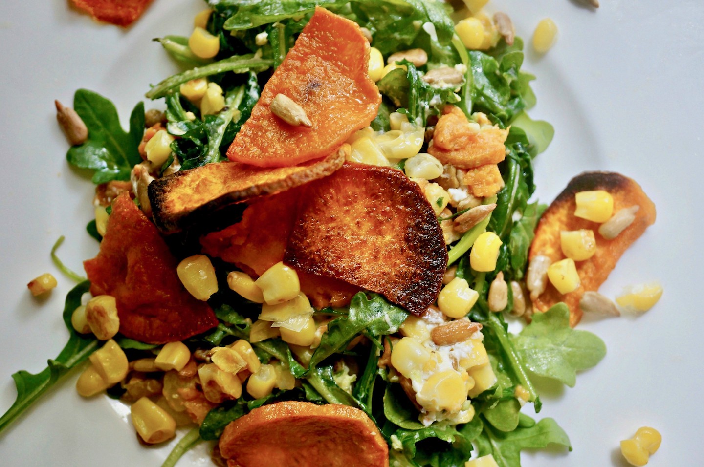 Pokrojony słodki ziemniak doprawiamy solą i odrobiną oliwy. Pieczemy w piekarniku nagrzanym do 190 C – do miękkości i lekkiego zarumienienia.