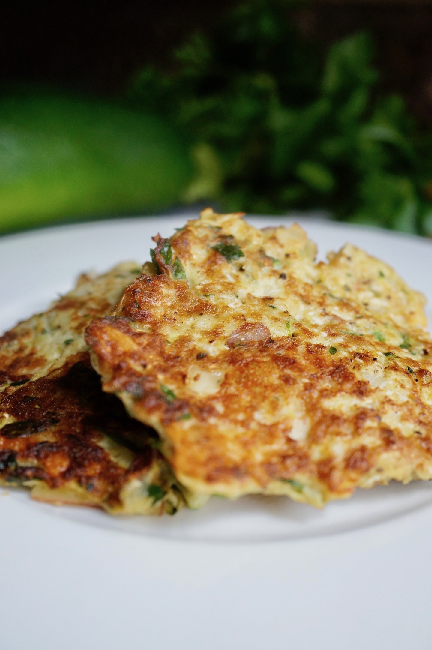 Do placków dodana jest też zielona pietruszka która bogata jest w witaminę C i ser parmezan. Aromatyczny ser jest niezbędny, gdyż on doskonale wyostrza smak kalafiora i cukinii.