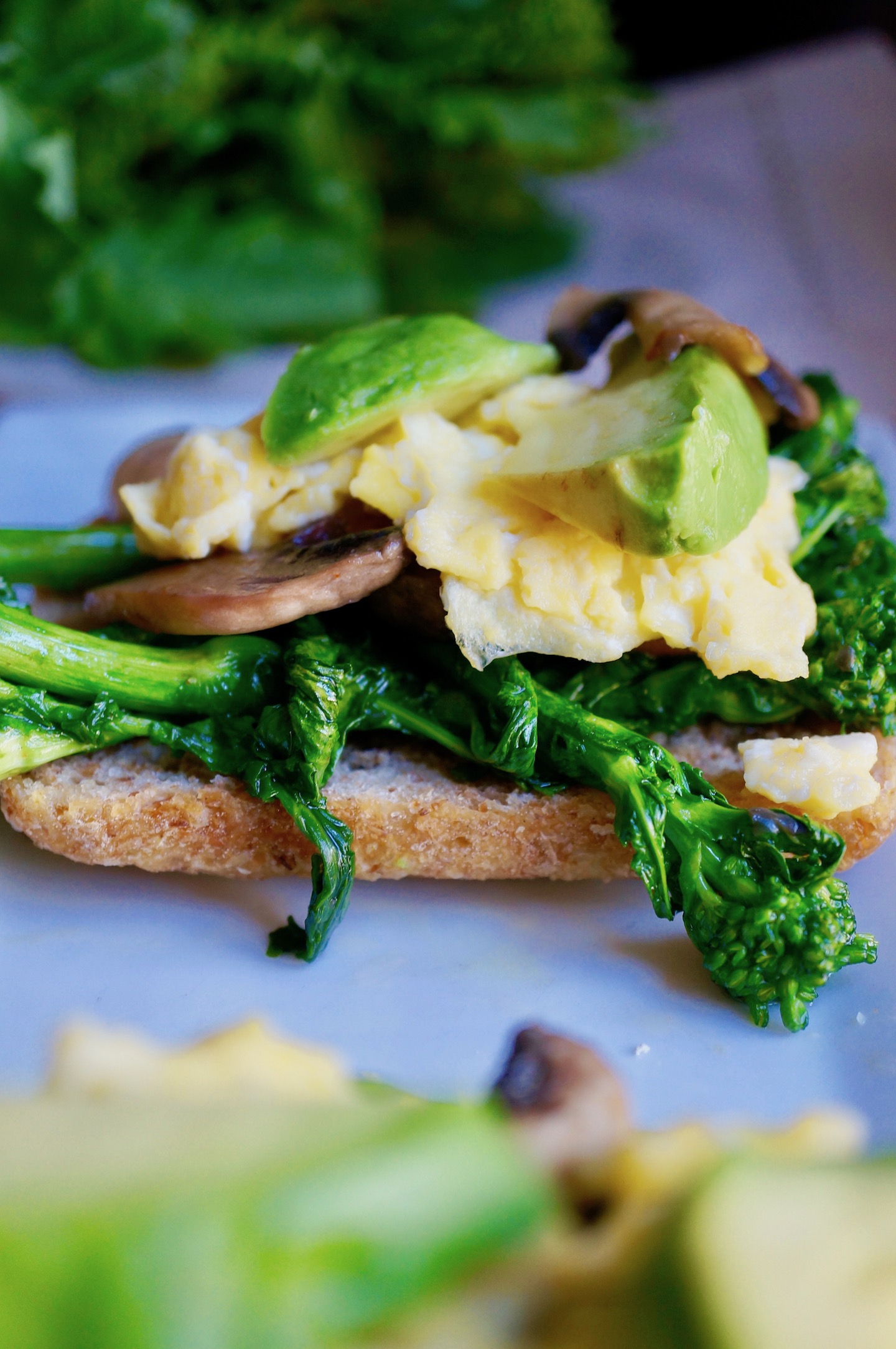 Prosta kanapka o ciekawym smaku i wyjątkowych wartościach odżywczych. Takie śniadanie przypadnie do gustu osobom lubiącym jajka, gdyż do tej kanapki możemy je dodać pod różną postacią. Rapini ma lekko gorzkawy smak jednak dzięki blanszowaniu i gdy połączymy je z pieczarkami i jajkiem ta goryczkowość jest niewyczuwalna.
